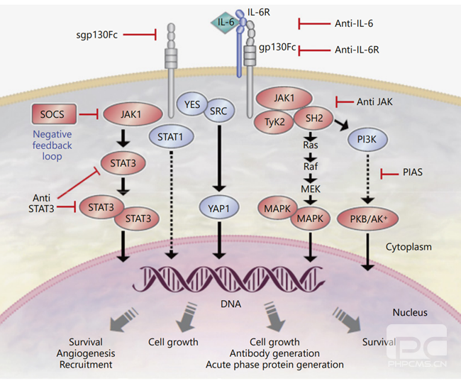 IL-6参与的信号通路及其机制:核心通路介导的调控网络